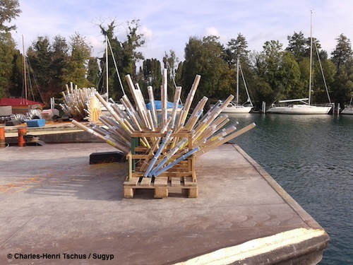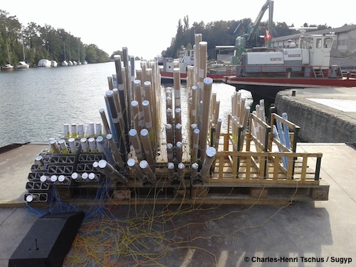 Vue d'ensemble des radeaux avec les 2 bateaux latéraux
