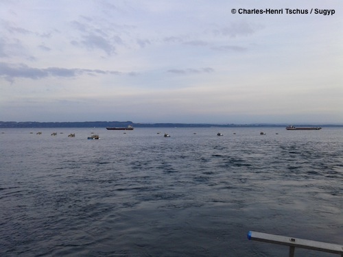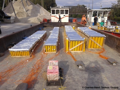 Vue d'ensemble des radeaux avec les 2 bateaux latéraux